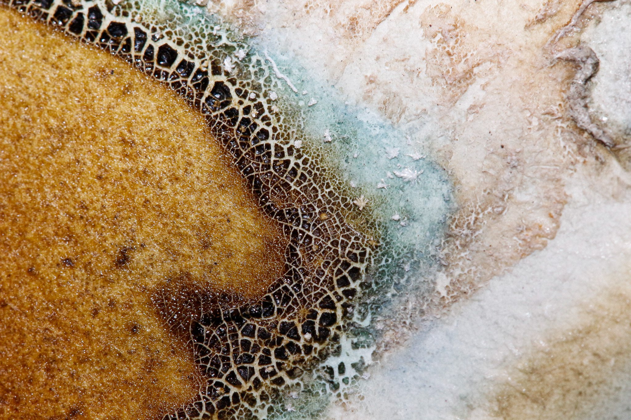 Close-up photographs of my ink paintings, taken at macro scale. These images turn tiny details into familiar terrains, revealing cracks, blooms and colour shifts that feel like distant skies, maps or microscopic worlds.